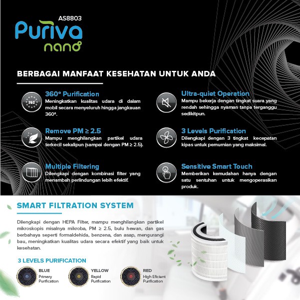 Air Purifier Mobil Penyaring Udara Portable ADVANCE Puriva Nano (AS8803) With HEPA Filter