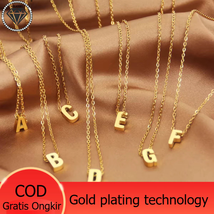 SAT.10 Kalung Rantai Huruf Gold - Original Designed Kalung Liontin Huruf SAT-FCA4030