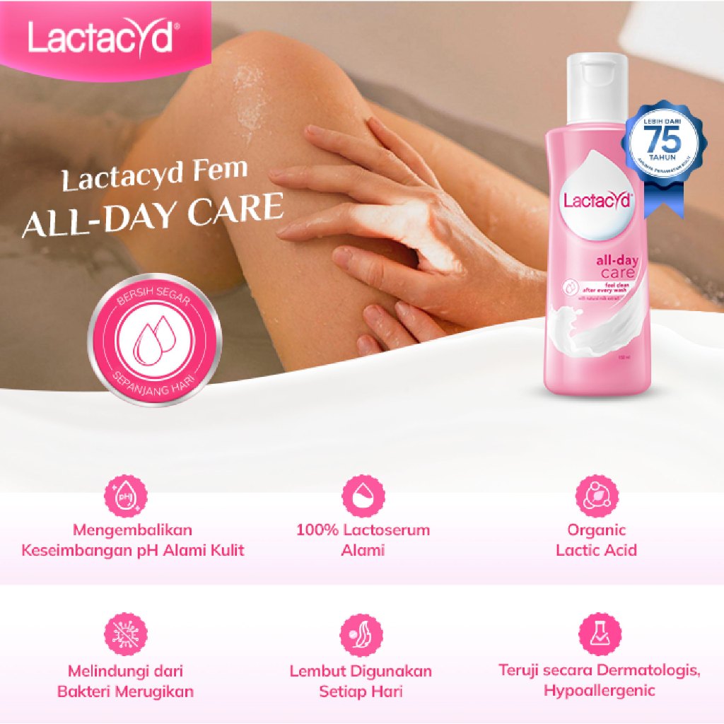 Lactacyd All Day Care Feminine Wash 60mL - Pembersih Kewanitaan untuk Melindungi dari Gatal dan Iritasi