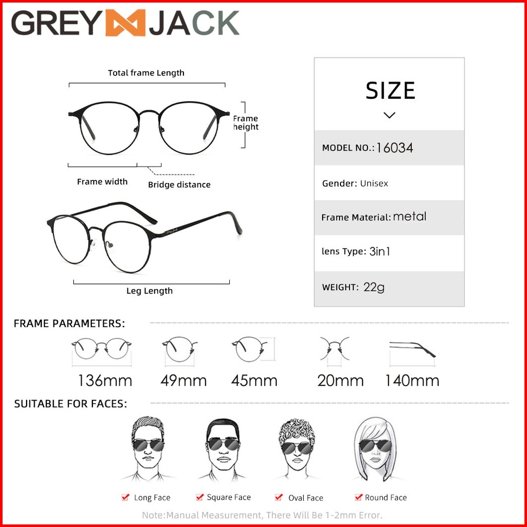Grey Jack Kacamata Photocromic Anti Radiasi Blueray 3in1 Anti Uv Wanita Pria Terbaru Cowok Baru Metal Bulat 9180