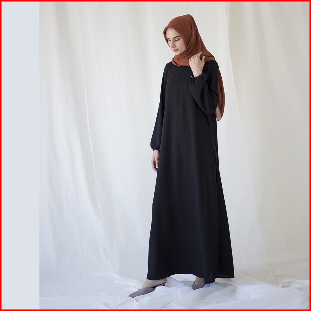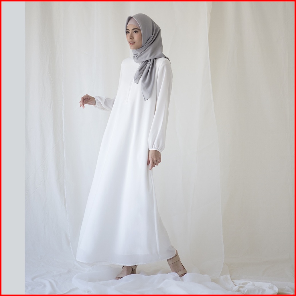Basic Sada By Aska Label - Gamis Polos Dengan Kantong Dan Busui Friendly Bahan Crepe Warna Putih Offwhite Hitam Black Ma