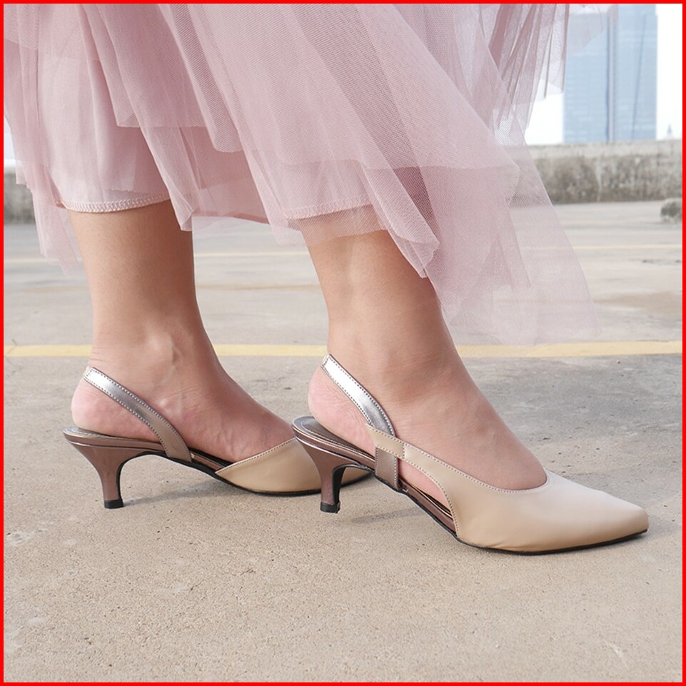 Bernike Shoes - Sepatu Wanita Metal Trim Slingback Pump Heels 5 Cm Elegant