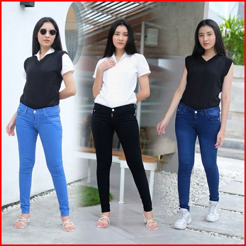 Jeans Skinny Wanita - Best Navy Hitam Blue Celana Jeans Pensil Wanita Bahan Melar Jsk - Prd