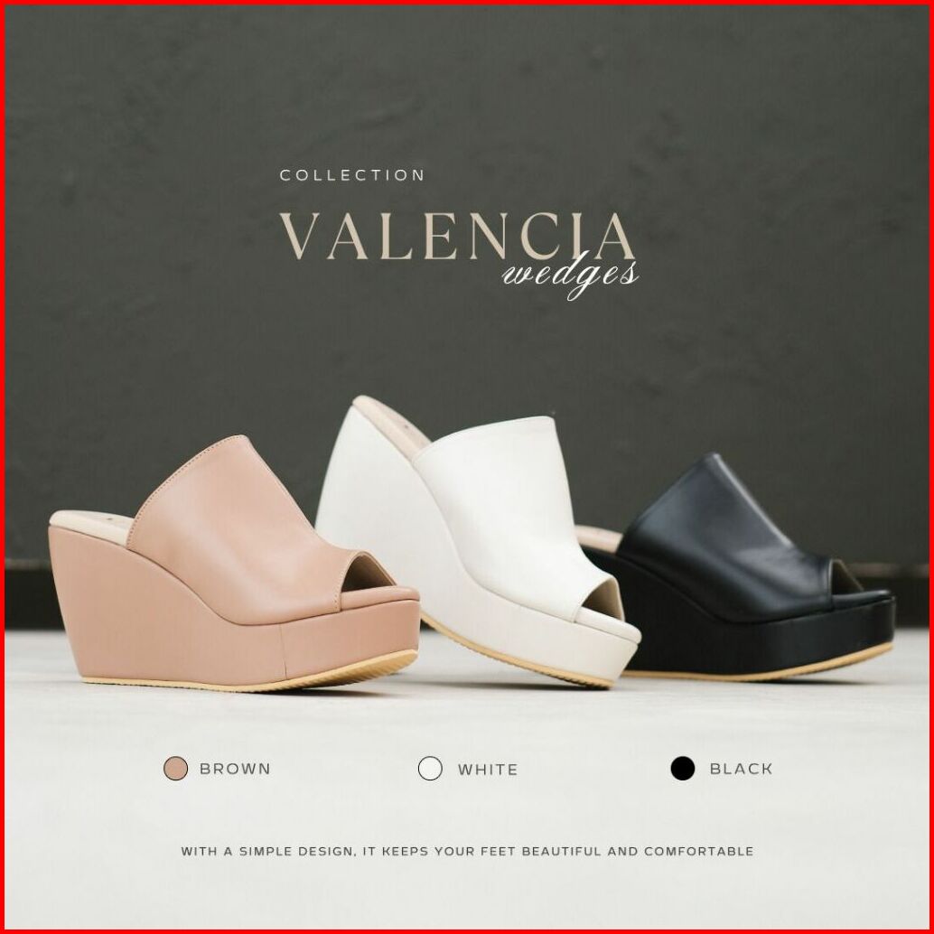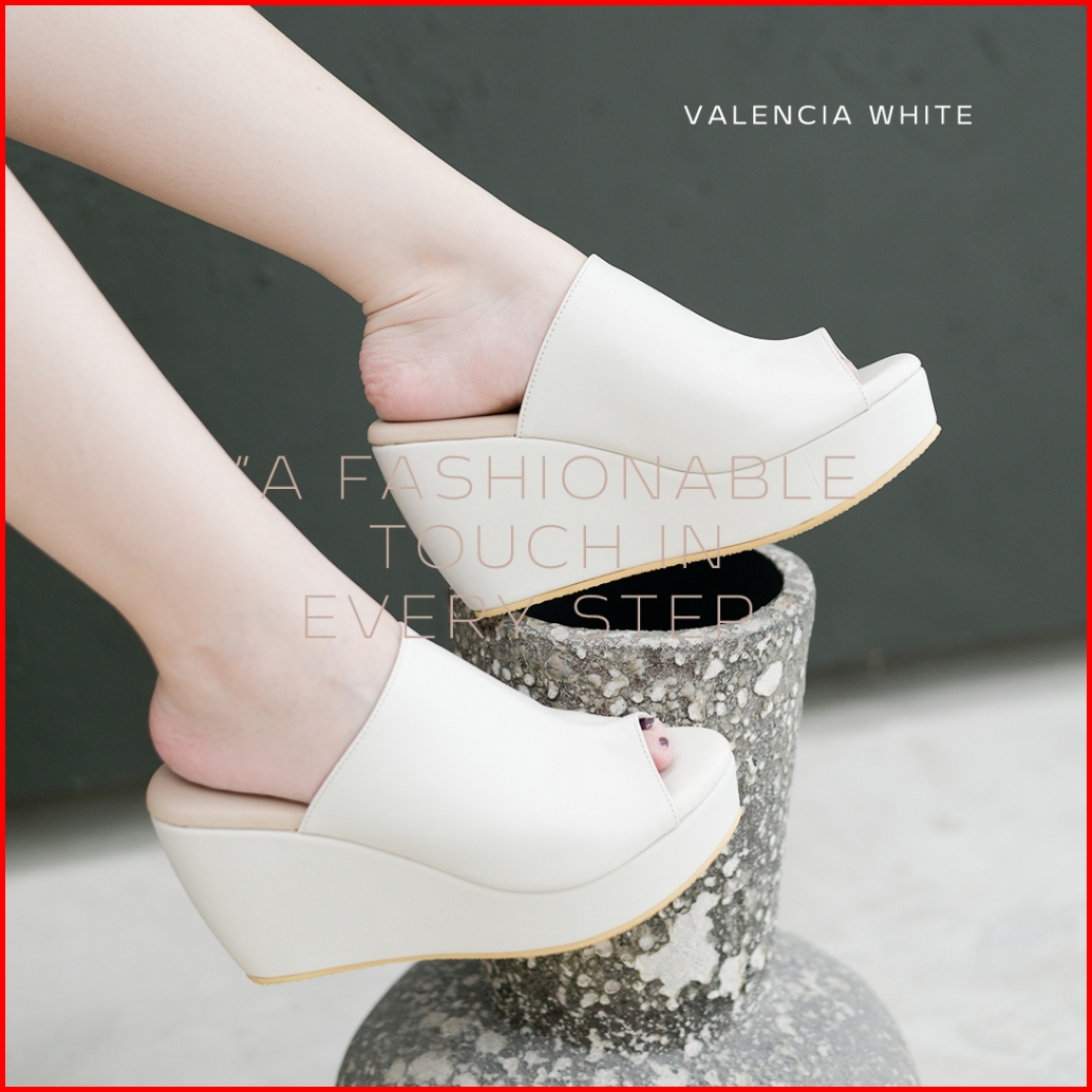 Voste Valencia - Sepatu Sandal Wedges Selop Mules Wanita Premium 9cm