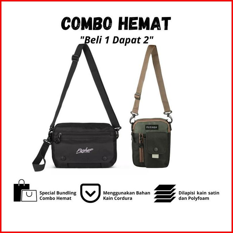 Pushop - Combo Hemat - Buy More Save More Beli 1 Dapat 2 Tas Selempang Pria Slingbag Razo Get Tas Mini Sling Bag Motta H