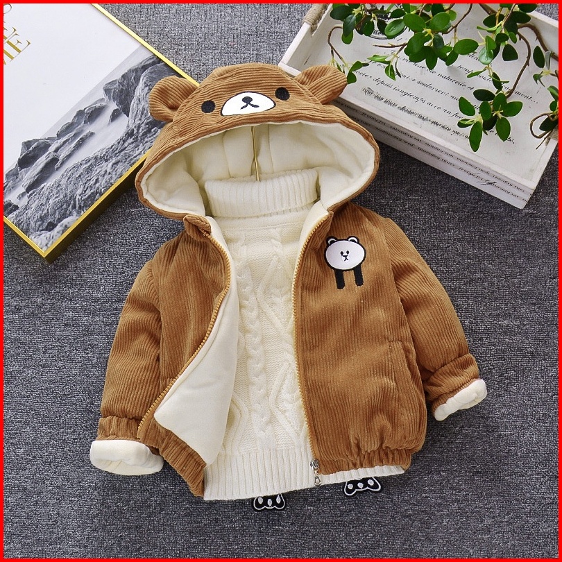 Bibub J39 - Jaket Bayi Laki Laki Perempuan Unisex J39 Jaket Bayi Premium Mantel Baby Girl And Boy Bear Hoodie Telinga Be