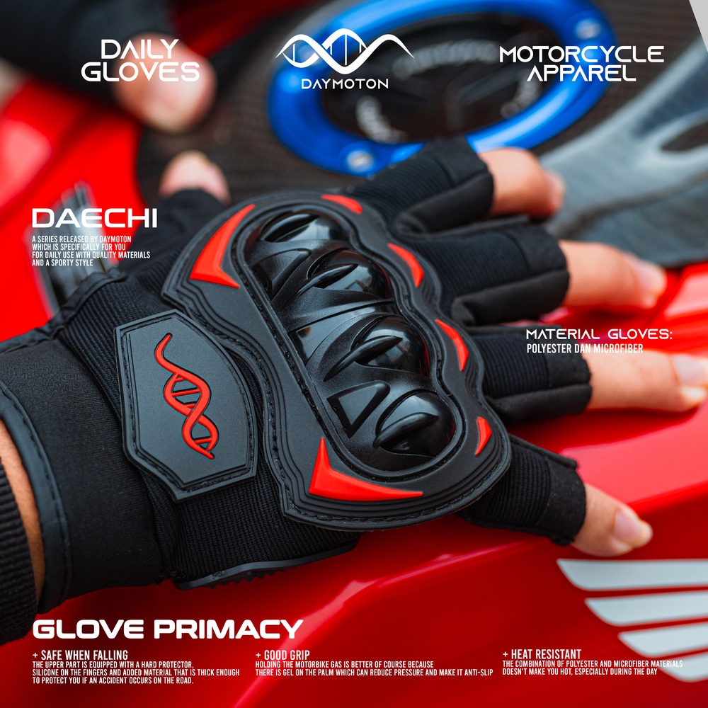 Sarung Tangan Motor Pria Wanita Half Series DAECHI dengan Protector dan Anti Slip