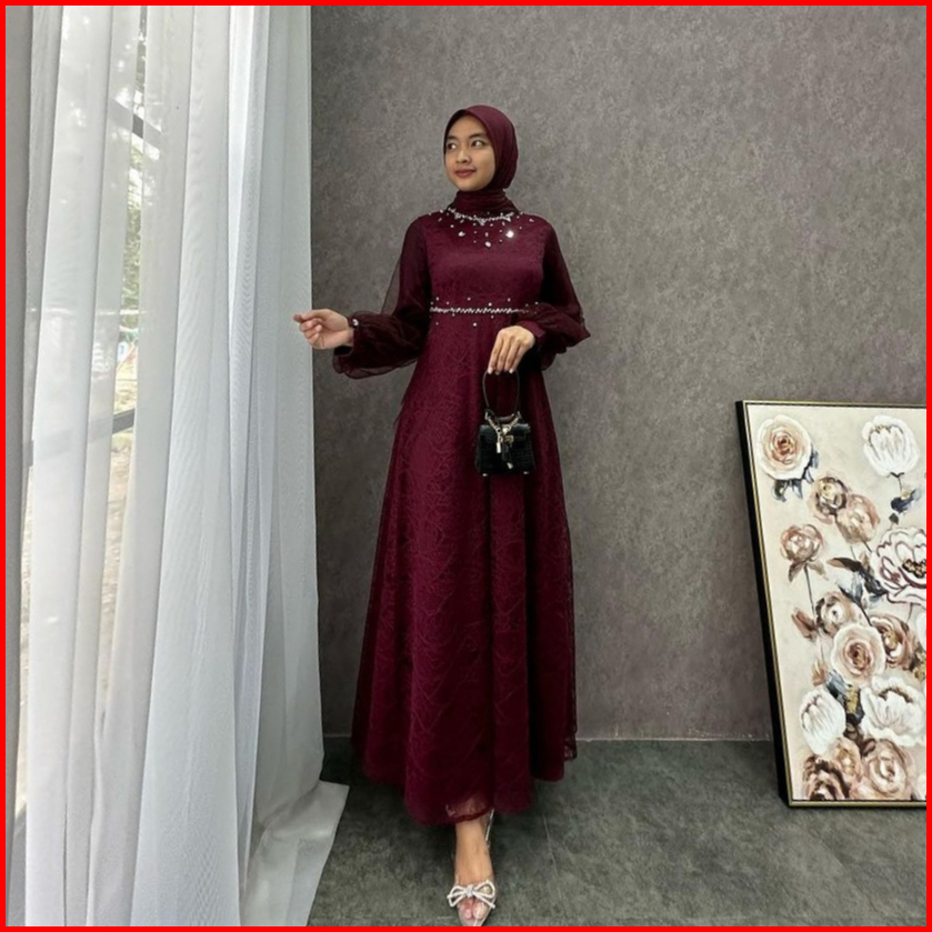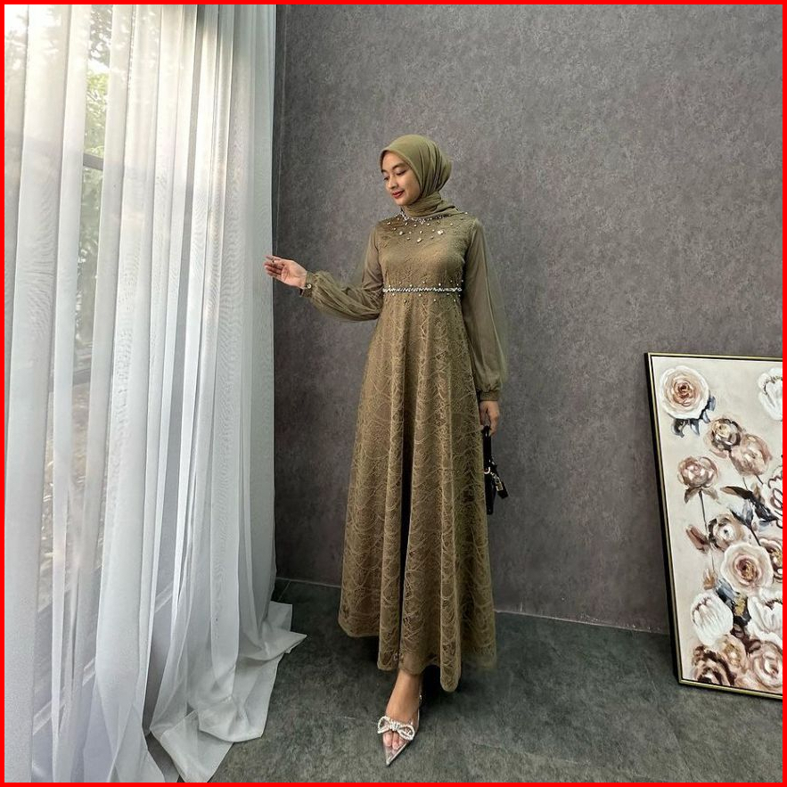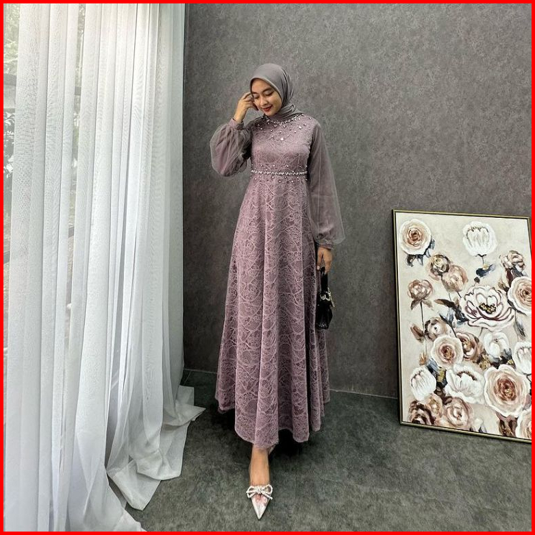 Dress Exclusive Gamis Lebaran Terbaru Dress Kondangan Gamis Brukat Maxi Pesta Lamaran Tunangan Kekinian Seragam Bridesma