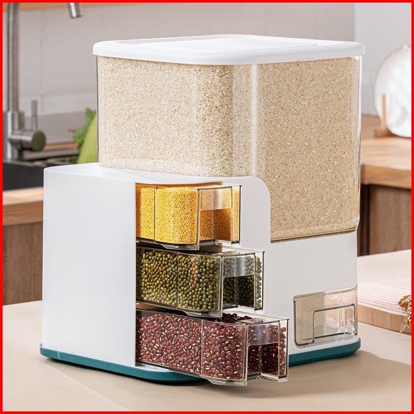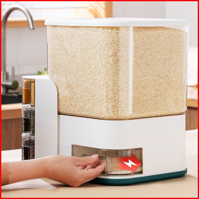 Zendispenser Beras Transparan 12.5kg 10kg Dengan 3pcs Wadah Bumbu