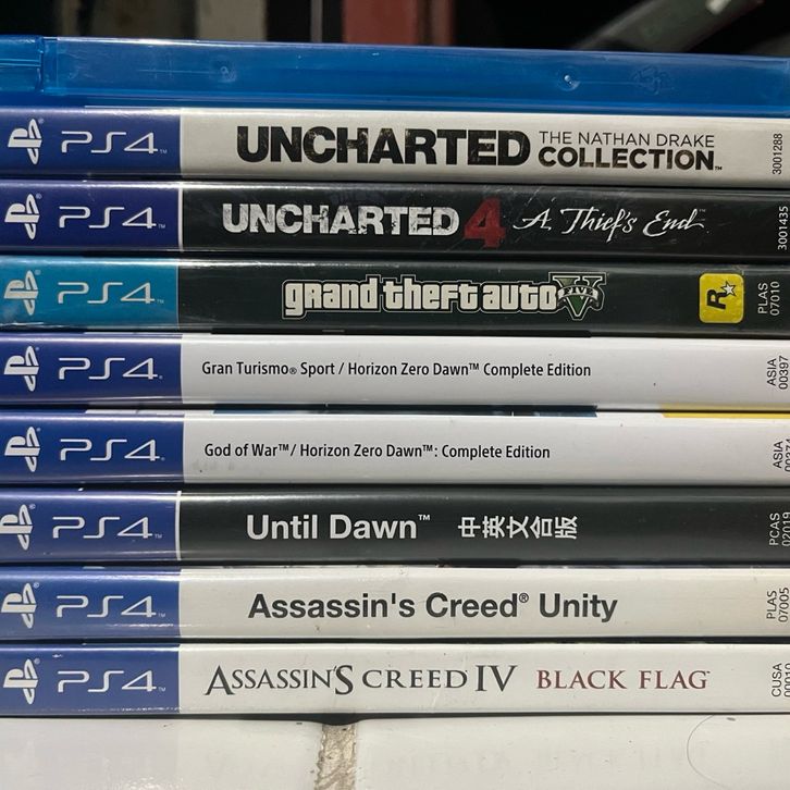 Ass balck flag, Bd spiderman, C.O.D, C.O.D bo 4, GTA Trilogy, GTA V, Horizon, Horizon+gow, Horizon+gt, Jump force, Lego movie, Lego starwars, Morales, Naruto, Rdr, Uncharted colection
