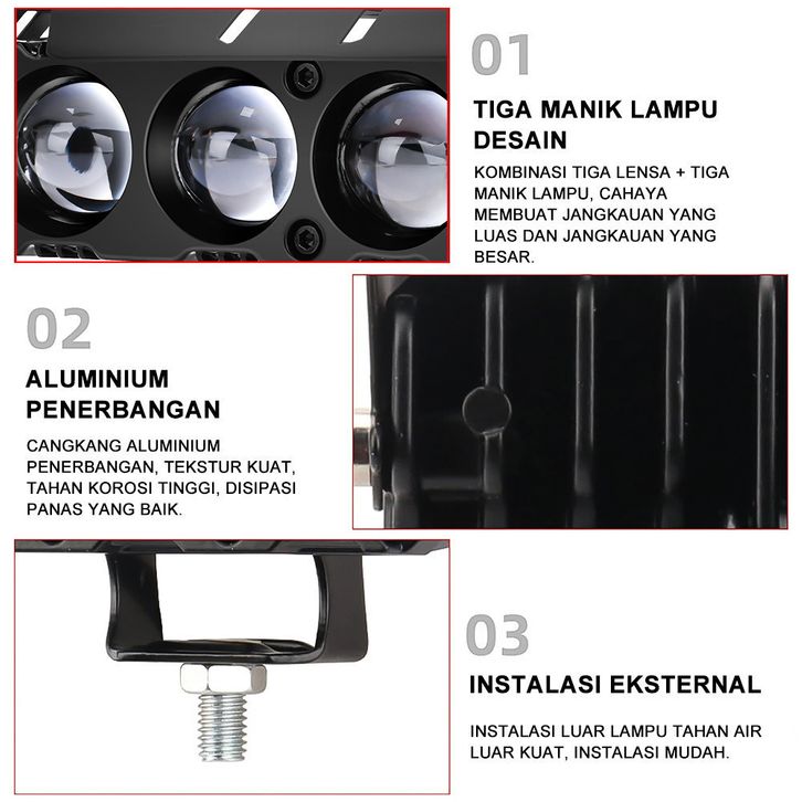 ã€FREE SAKLAR】12V / 24V Lampu Sorot Tembak Mobil Lampu LED Tembak Sorot D3 SQL Lampu Tembak Sorot LED Laser 3 Mata