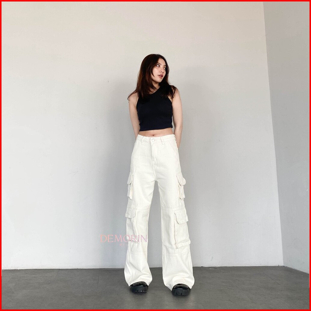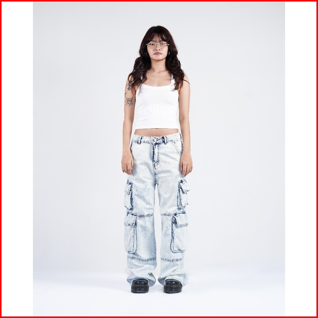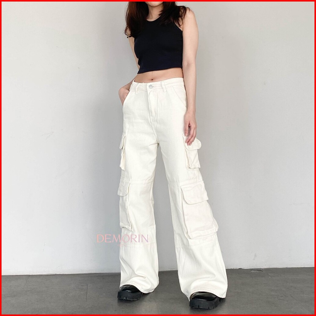 Demorin Ep1 Hanna Celana Panjang Jeans Wanita High Waist Cargo Acid Wash Jeans Boyfriend Fashionable Dan Kekinian