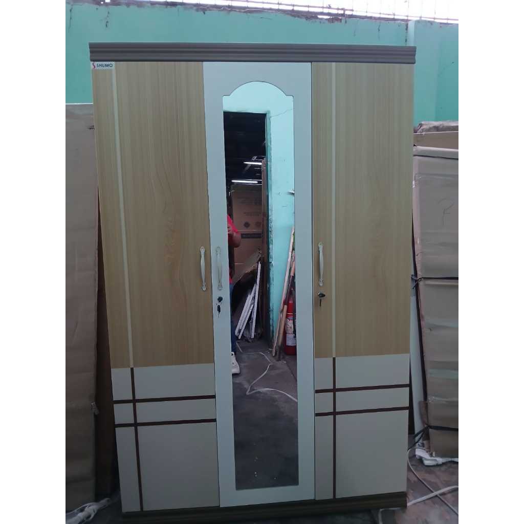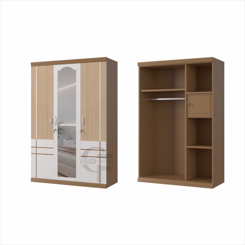 Lemari Pakaian Besi 3 Pintu Ayun Minimalis | Lemari Baju Swing Wooden Series