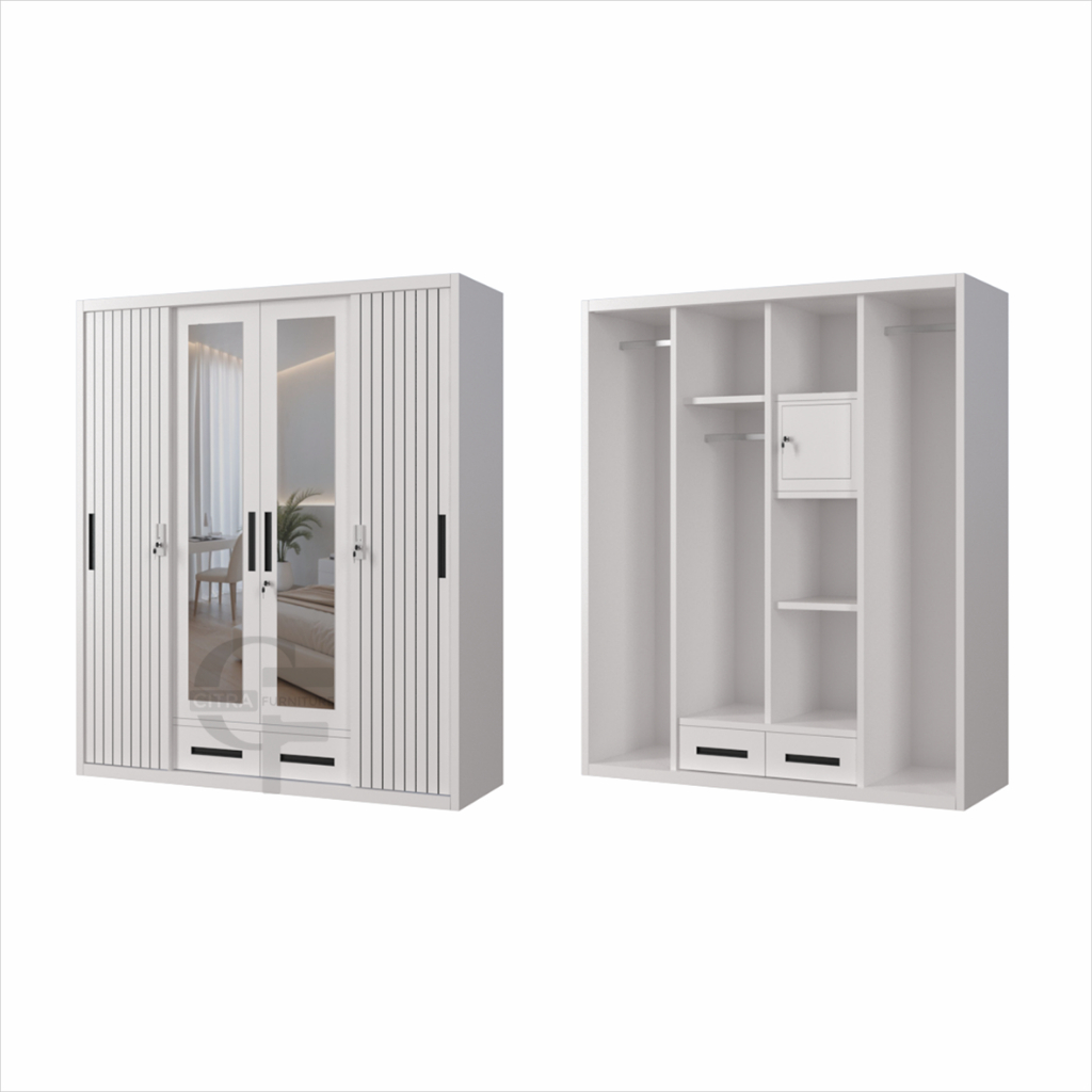Lemari Pakaian Besi 4 Pintu Sliding Minimalis |Lemari Baju sleding laci Monoline Series