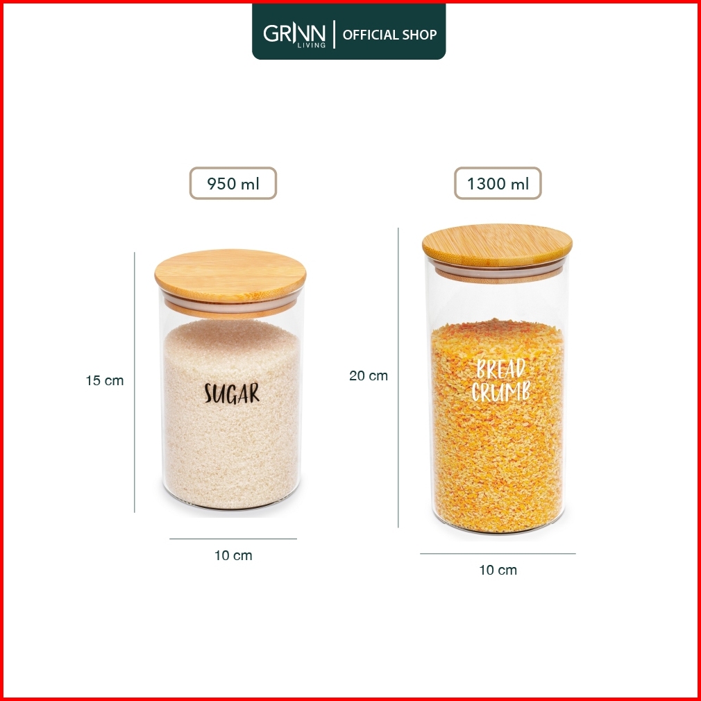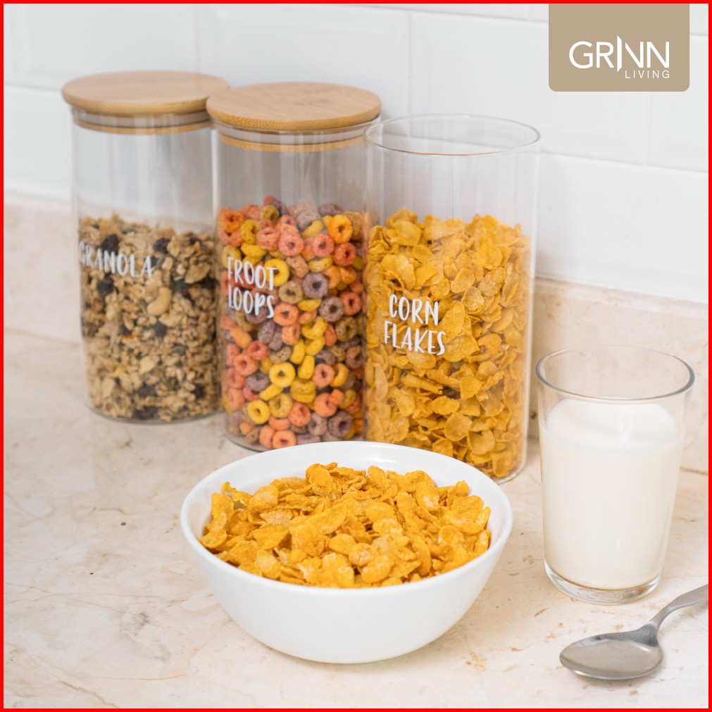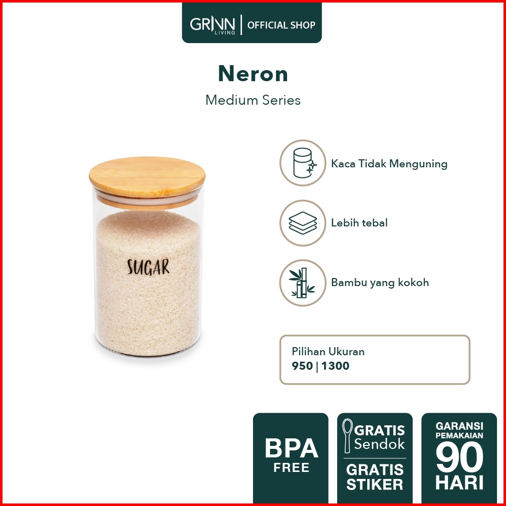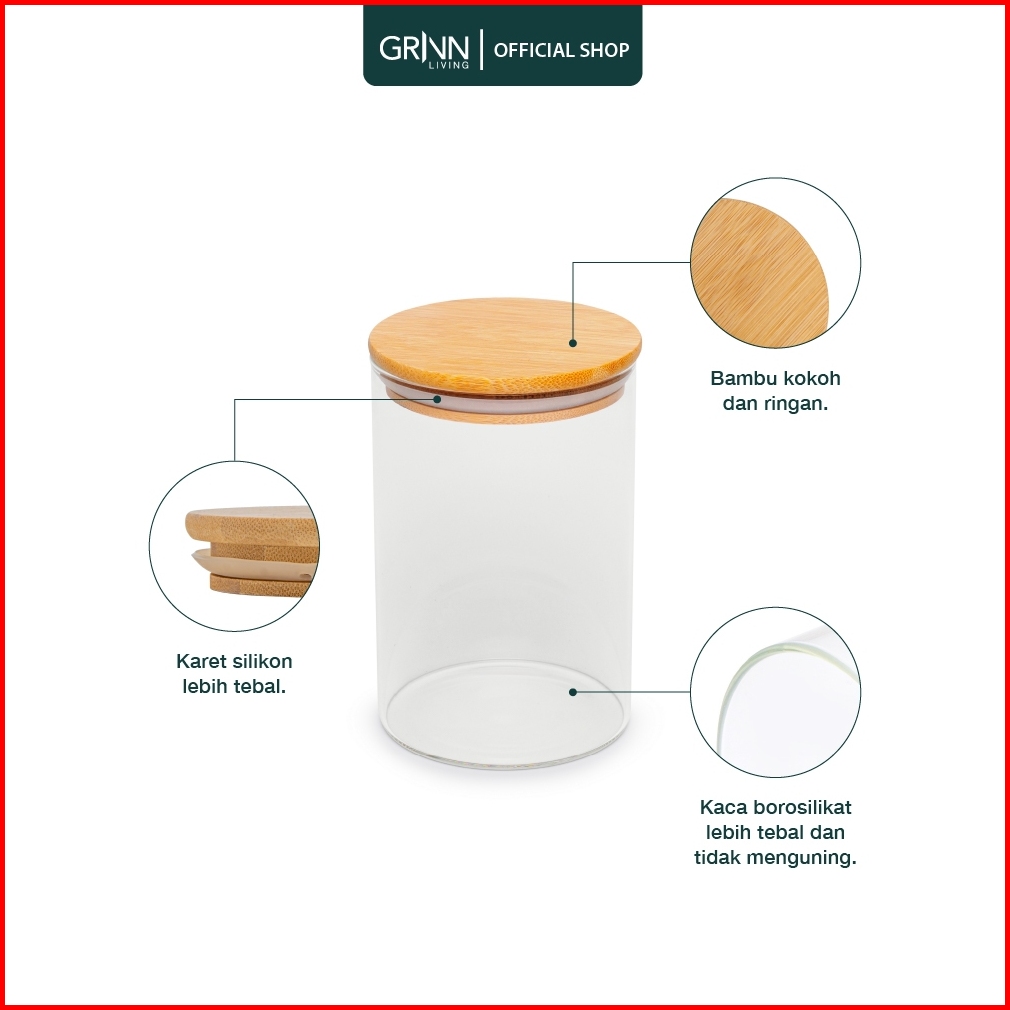 Grinn Living Neron Jar Medium Toples Kaca Tutup Kayu Bambu Tempat Kopi Gula Snack Kue Aesthetic