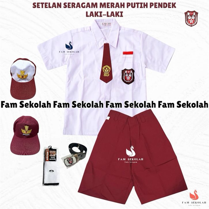 (TERMURAH)Setelan Seragam SD BAJU PENDEK CELANA PENDEK MERAH Untuk Laki-Laki