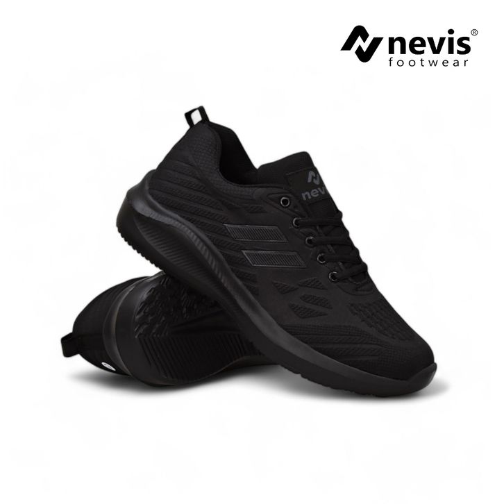 NEVIS Sepatu Pria Jumbo Big Size 39-49 Hugo Cross Sport Sneakers Casual Olahraga Running Lari Full Black Hitam Polos
