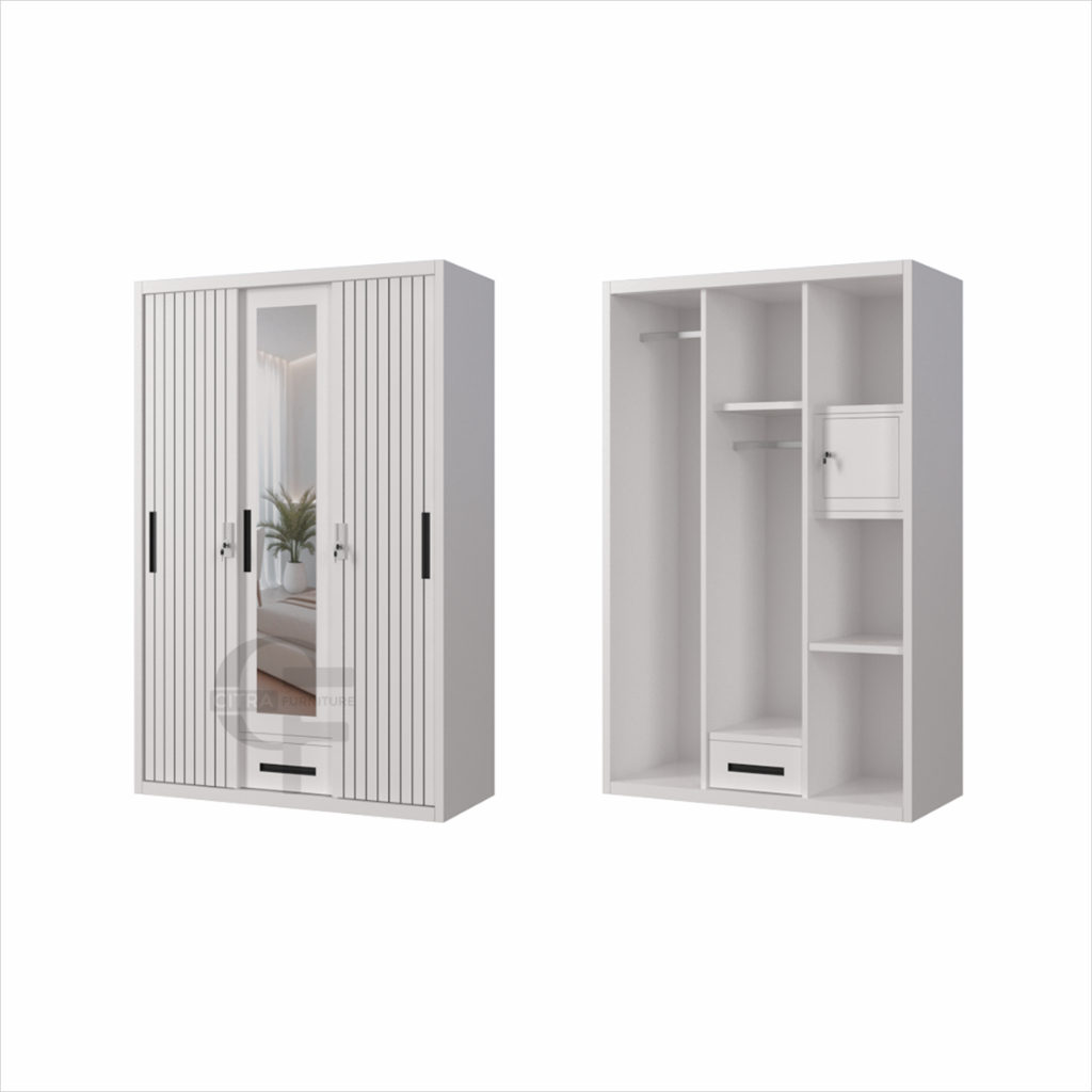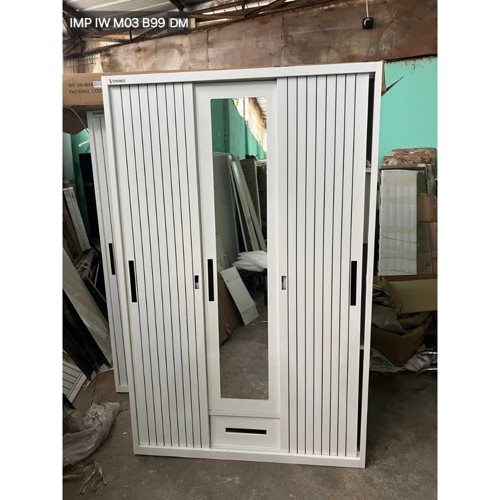 Lemari Pakaian Besi 3 Pintu Sliding Minimalis | Lemari Baju sleding Monoline Series