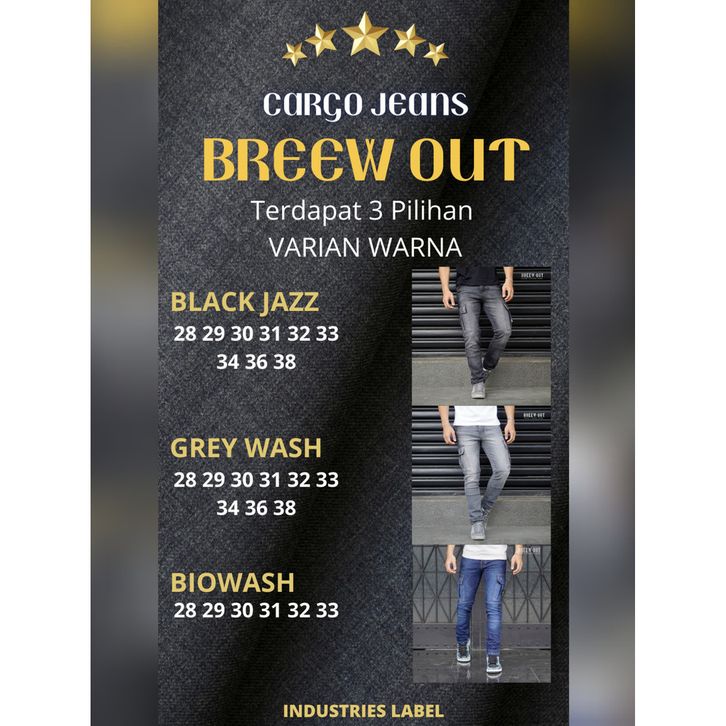 Breew Out Cargo Jeans Pria Original Denim Elastis Warna Grey Wash BOJ002