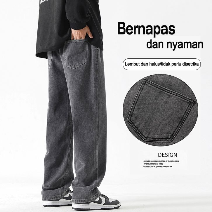 Celana Jeans Pria Panjang Hitam Baggy Pants Korean Style