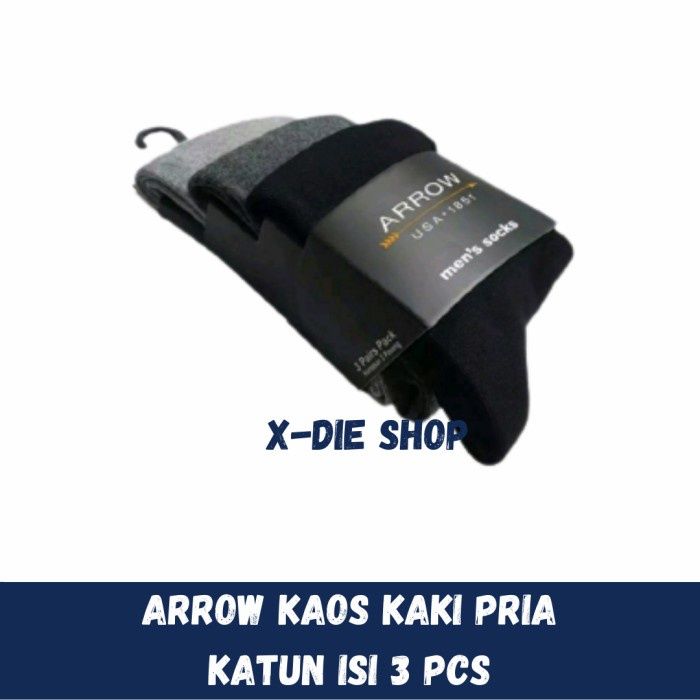 RK - Kaos Kaki Arrow isi 3 Pcs Bahan Katun Panjang All Black Dan Mix Colour - Mix, All Size