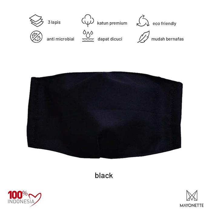 TERLARIS MAYONETTE MASKER DUCKBILL 3PLY KAIN KATUN PREMIUM NONMEDIS HIJABREADY HITAM 1 PCS