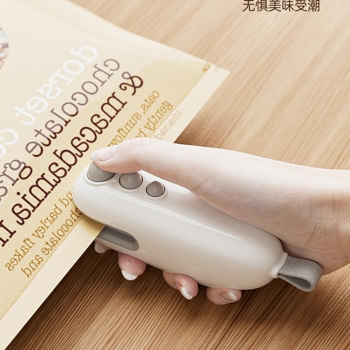 TANPA DP MINI SEALER PORTABEL RECHARGEABLE DENGAN TOMBOL ONOFF DAN LAMPU INDIKATOR PUTIH