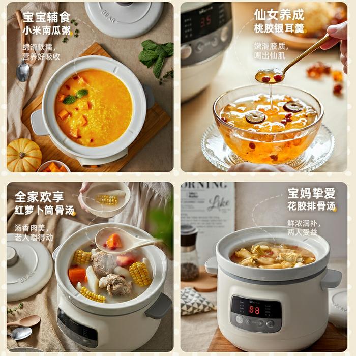 TANPA DP BEAR ELECTRIC SLOW COOKER 3L PUTIH PORCELIN POT