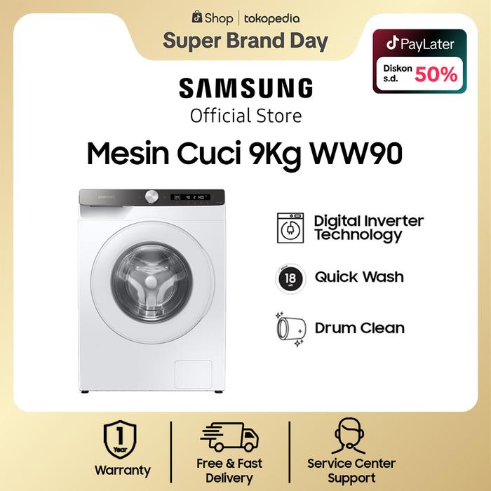 TERLARIS SAMSUNG 9KG MESIN CUCI DENGAN ECOBUBBLE DAN AI CONTROL WW90T504DTTSE WHITE