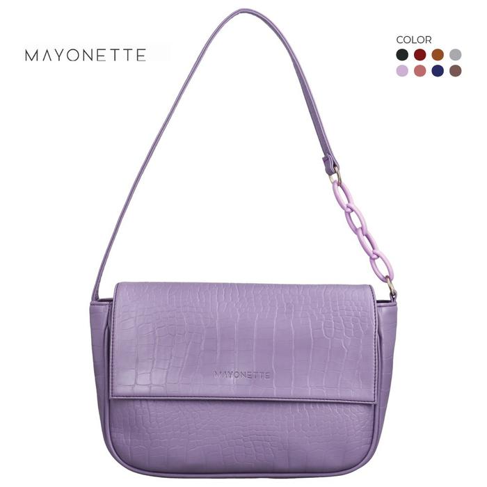 TERLARIS MAYONETTE MERILYN SHOULDER BAG VINTAGE CROCO BAG TAS WANITA TERBARU 2022 KULIT SELEMPANG BLACK