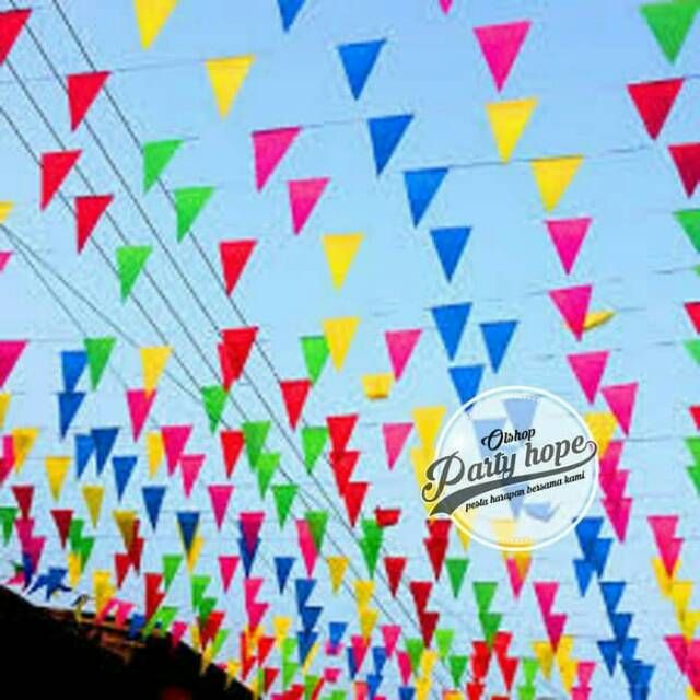 bendera kain warna warni / bendera umbul umbul karnaval / flag segitiga kain warna/ bendera kain