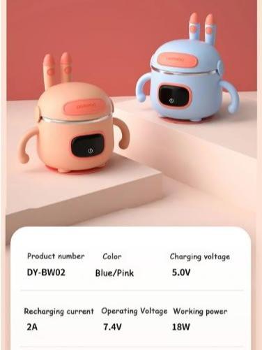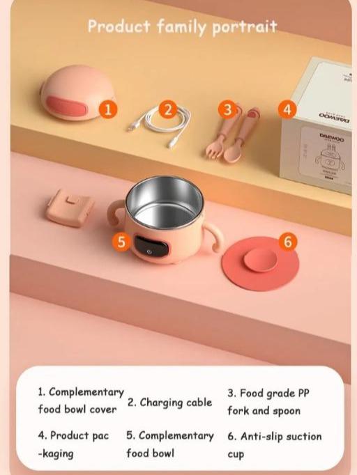 TANPA DP MANGKOK PEMANAS MAKANAN BAYI PORTABEL DAEWOO RECHARGEABLE 400ML STAINLESS BIRU