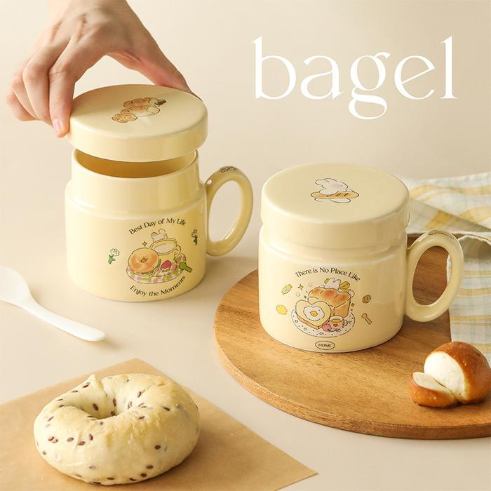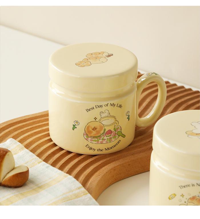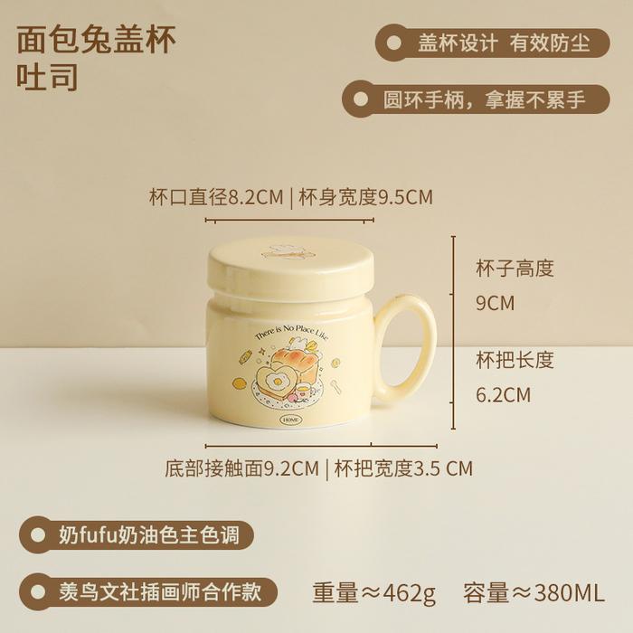 TANPA DP MUG CANGKIR KELINCI ROTI DENGAN TUTUP CANGKIR KERAMIK KITCHENWARE ROTI