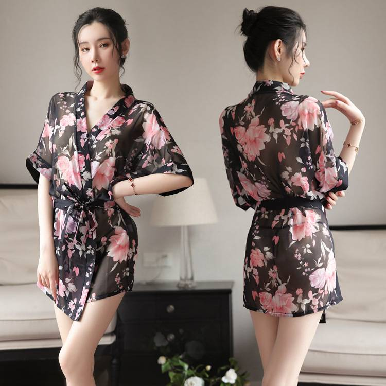 KIMONO LINGERIE SEXY GSTRING BAJU TIDUR BAHAN SIFON DICETAK PRINTING KFLOW