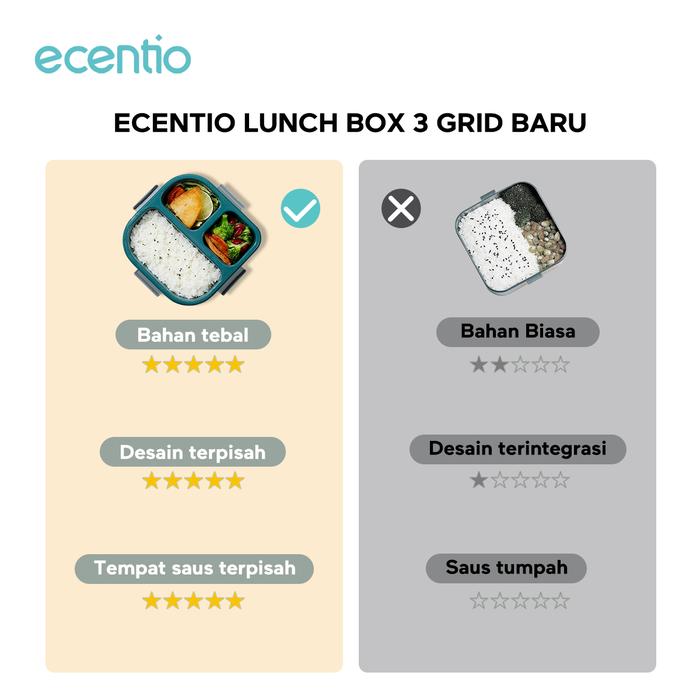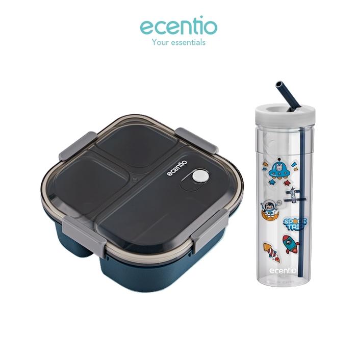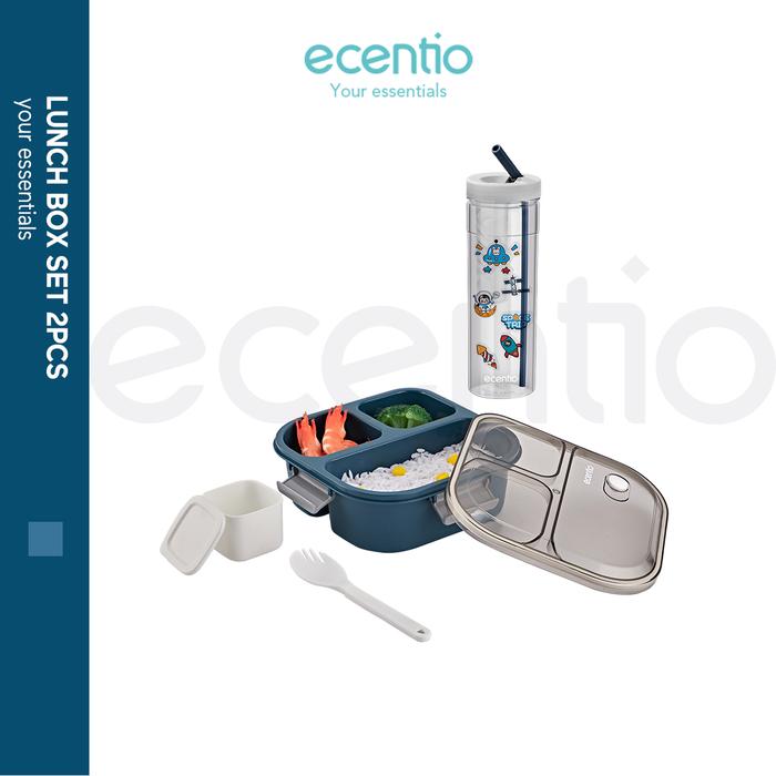 TANPA DP ECENTIO LUNCH BOX SET KOTAK MAKAN 1100ML BOTOL MINUM 780ML SET BIRU