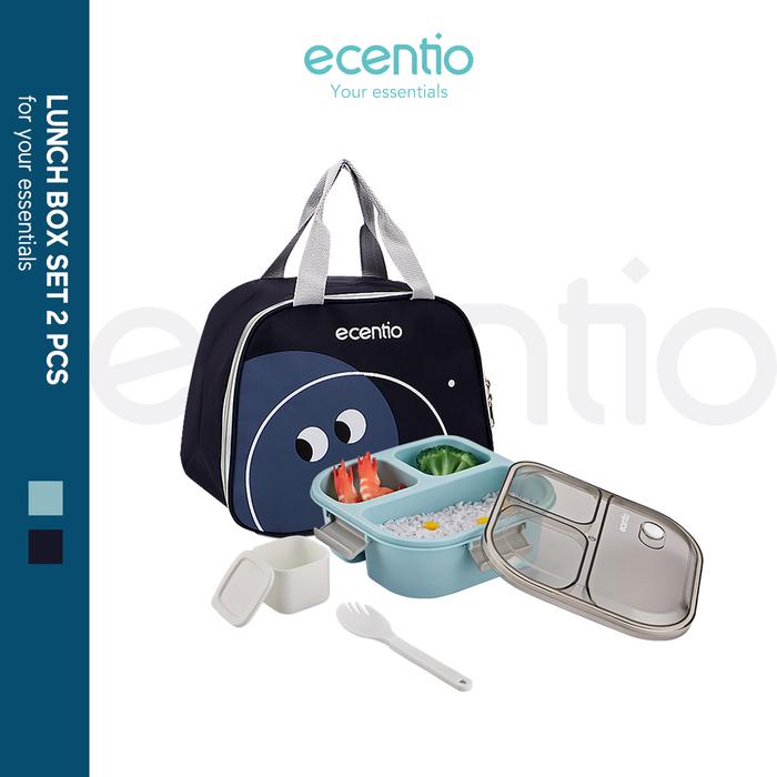 TANPA DP ECENTIO KOTAK MAKAN 3 GRID TEMPAT MAKAN BPA FREE LUNCH BOX SET BIRU