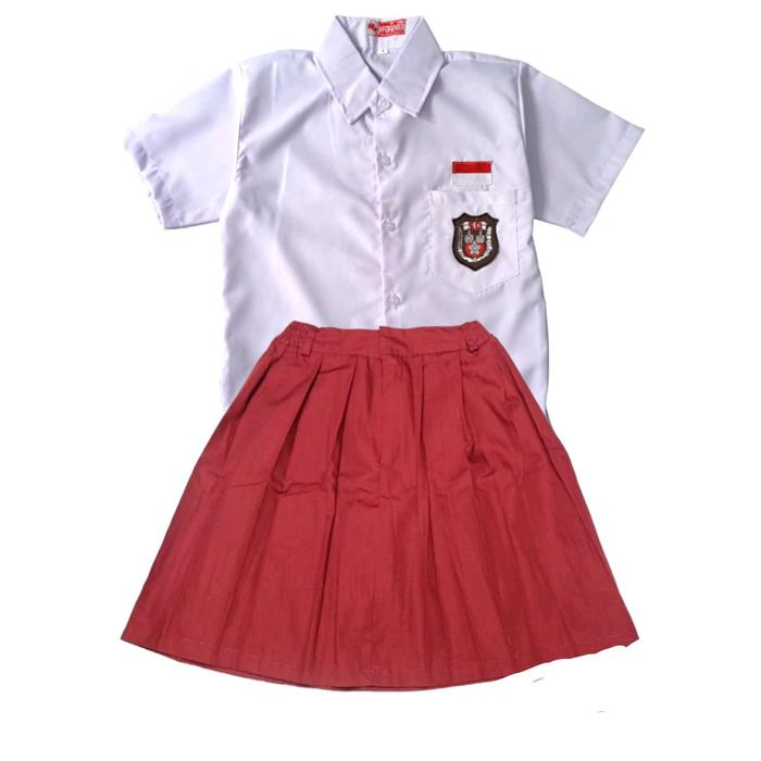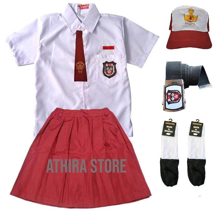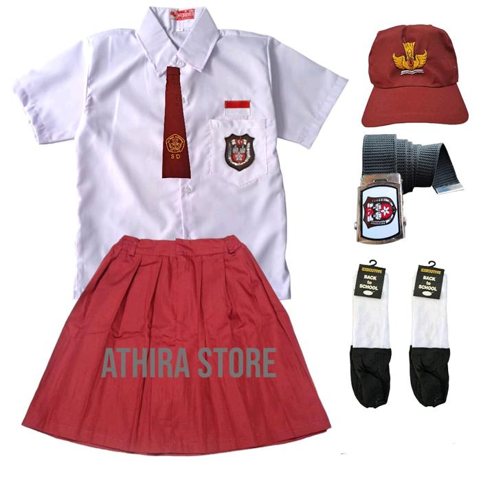 TERLARIS SERAGAM SEKOLAH ANAK SD PEREMPUAN BAJU PENDEK ROK PENDEK SUPER LENGKAP CEWEK BORDIR SET TOPI MERAH POLOS UMUR 6 TAHUN