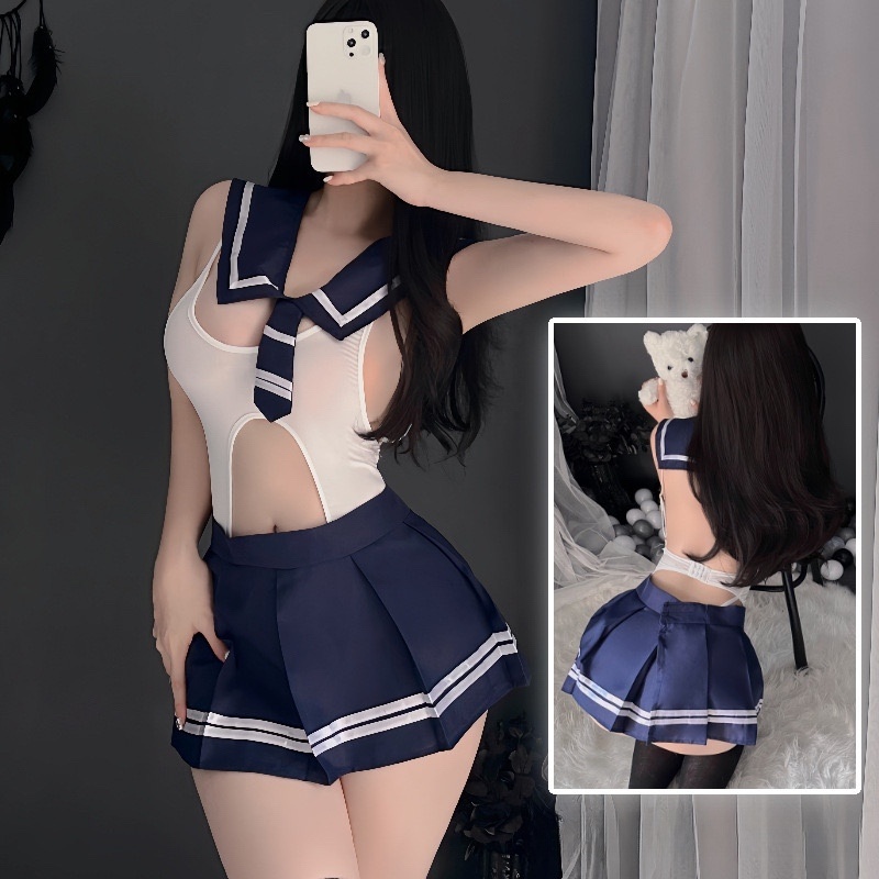 LINGERIE SEXY JAPANESE MANIS SISWA COSPLAY SEKSI HOT SET JUMPSUIT SET 3A201-