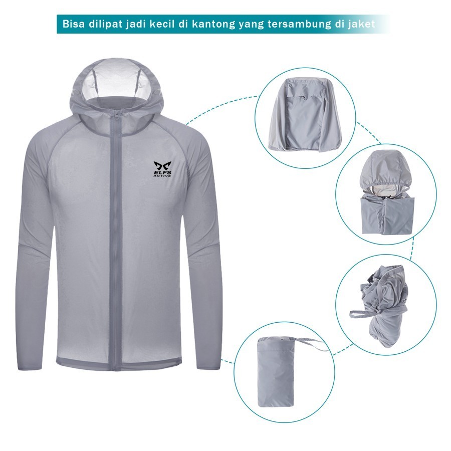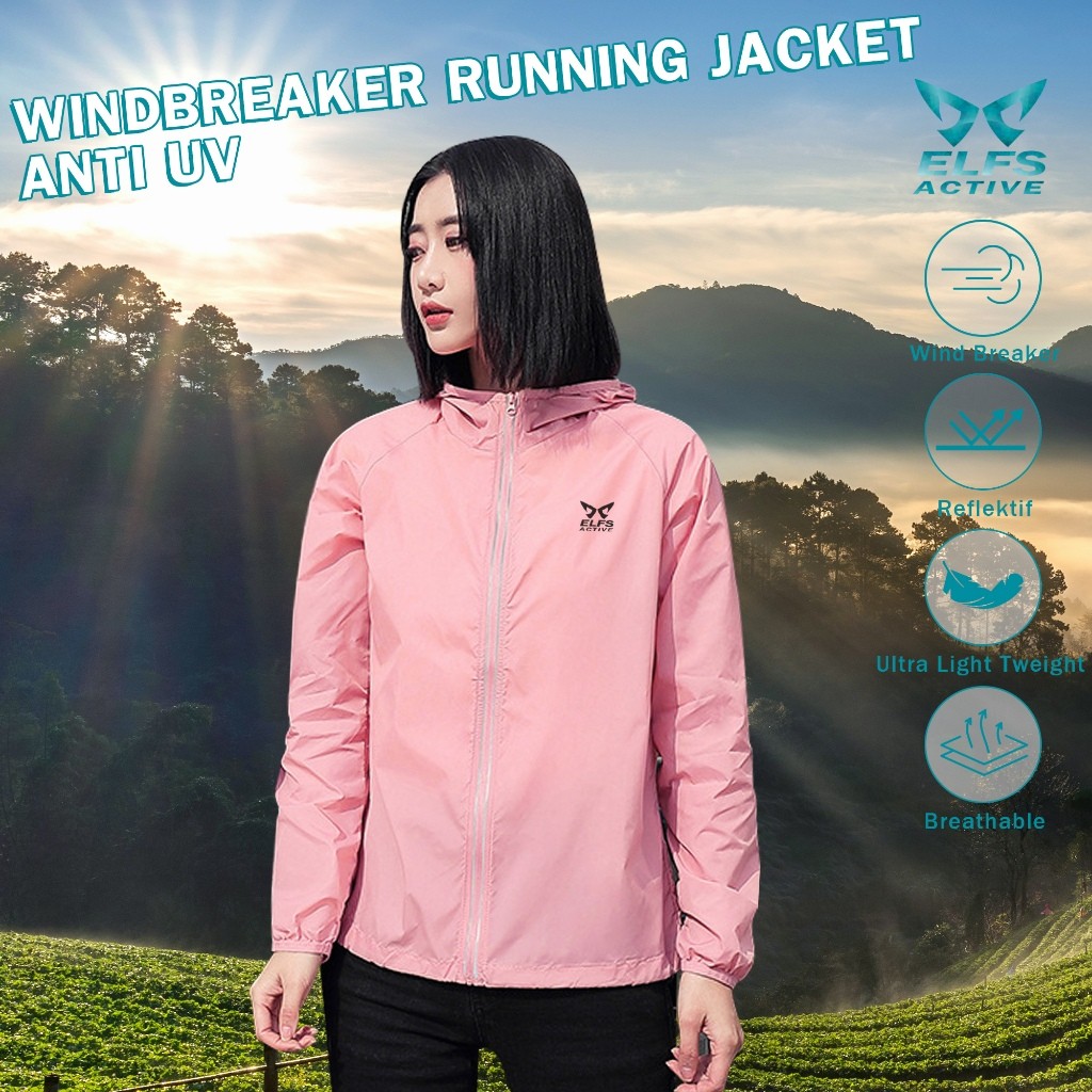 ELFS ACTIVE FOLDABLE REFLECTIVE WINDBREAKER RUNNING JACKET WANITA ANTI UV