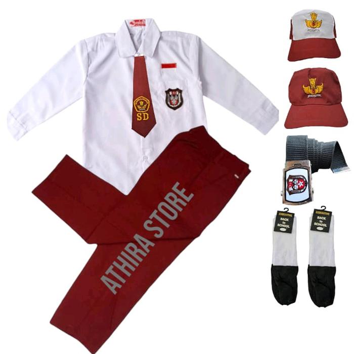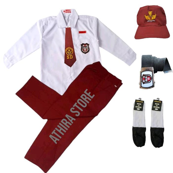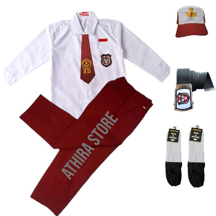 TERLARIS BAJU SERAGAM ANAK SD LAKI LAKI LENGAN PANJANG CELANA PANJANG SUPER LENGKAP PAKAIAN SET TOPI MERAH POLOS UMUR 6 TAHUN
