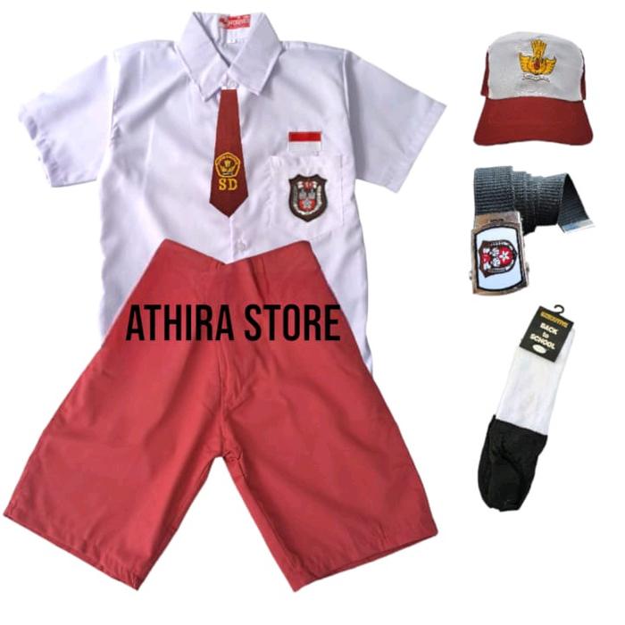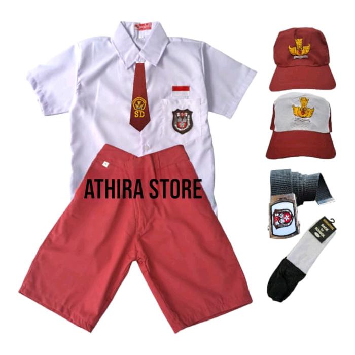 TERLARIS BAJU SERAGAM SEKOLAH ANAK SD LAKI LAKI LENGAN PENDEK CELANA PENDEK BORDIR SETELAN SET MERAH PUTIH UMUR 6 TAHUN