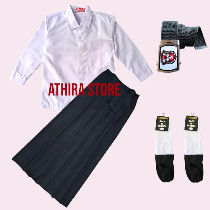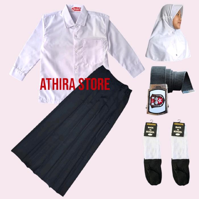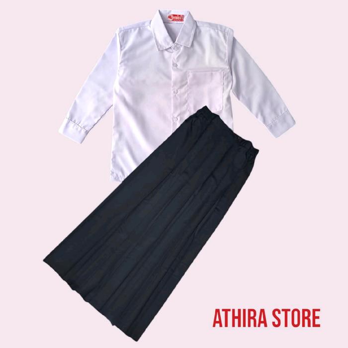 TERLARIS BAJU SEKOLAH ANAK SD PEREMPUAN LENGAN PANJANG PUTIH POLOS DAN ROK HITAM FASHION 1 SET PAKAI JILBAB 6 TAHUN