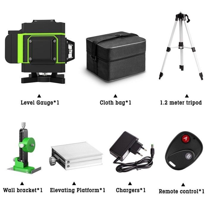 LASER LEVEL 4D 16 Line Self Leveling Garis Pakai Remot + TRIPOD - Hijau, Plus Tripod
