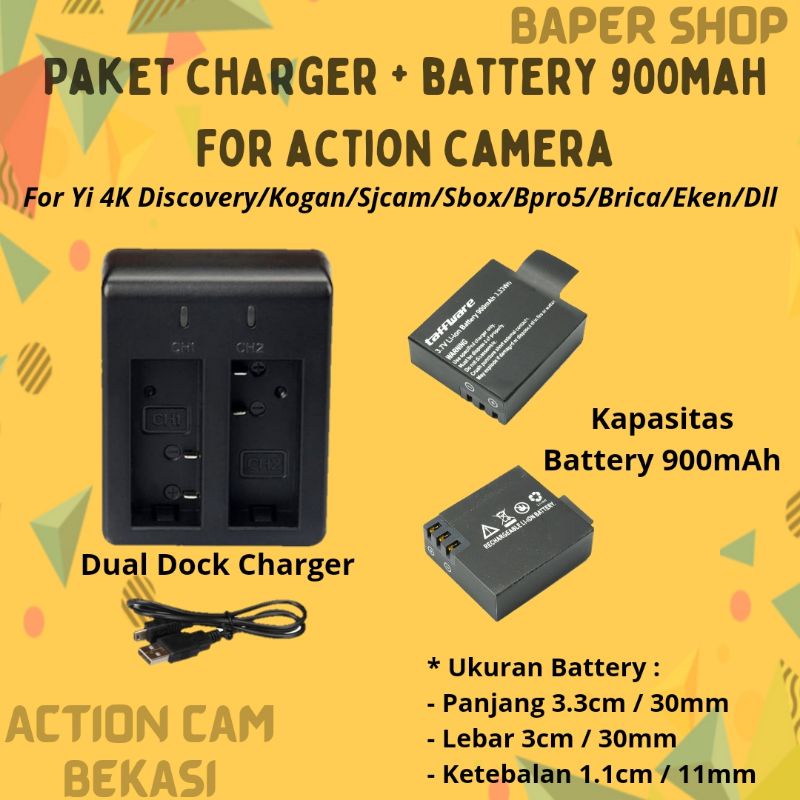 [Mall] Dual Dock Charger Dan Baterai 2 Battery Yi 4K Discovery Kogan Brica Sjcam Kogan Sbox BPRO M10 Eken