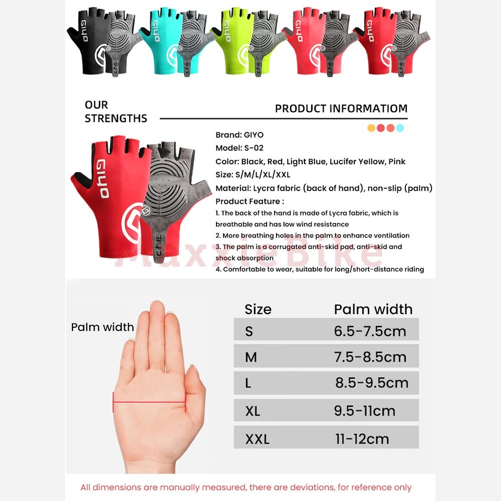GIYO S02 SARUNG TANGAN SEPEDA BIKE GLOVE HALF FINGER CYCLING PADDING GEL GLOVES OUTDOOR UNISEX SPORT