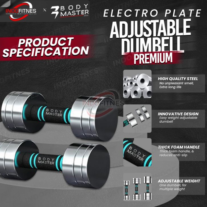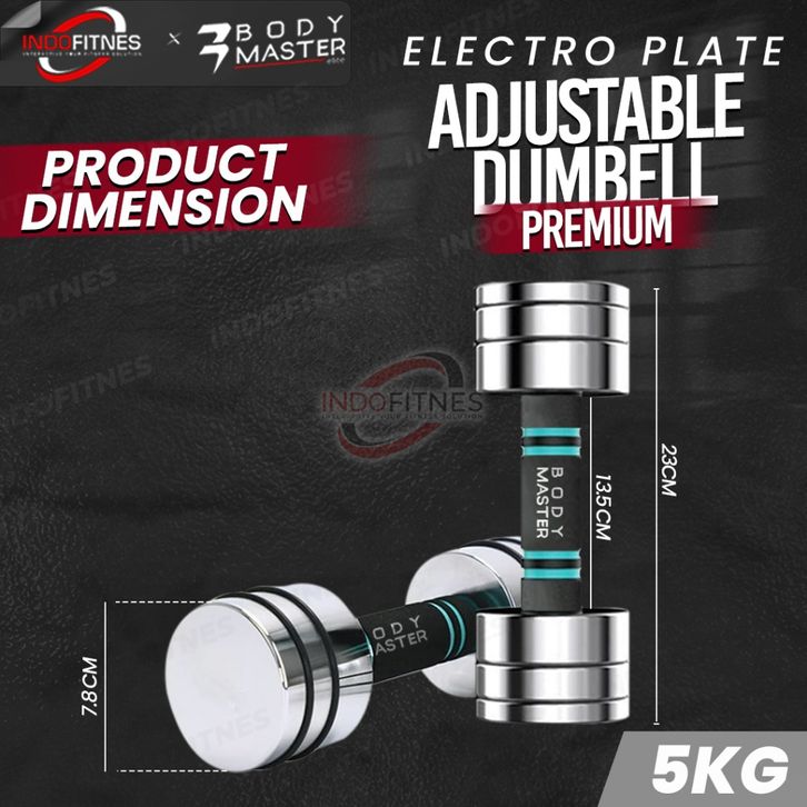 { PROMO - CICILAN } BODYMASTER PREMIUM ADJUSTABLE DUMBELL 5KG - BARBELL DUMBEL ELECTROPLATE