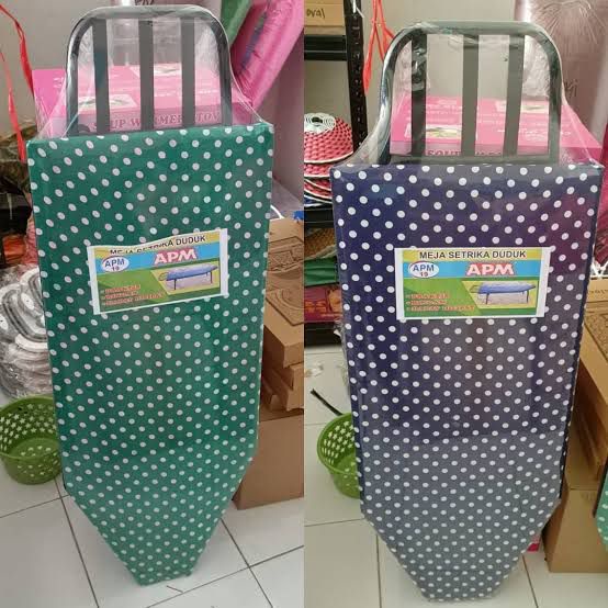 Meja setrika duduk lipat / meja gosok komplit, kuat, kokoh tempat setrikaan / gosokan serbaguna