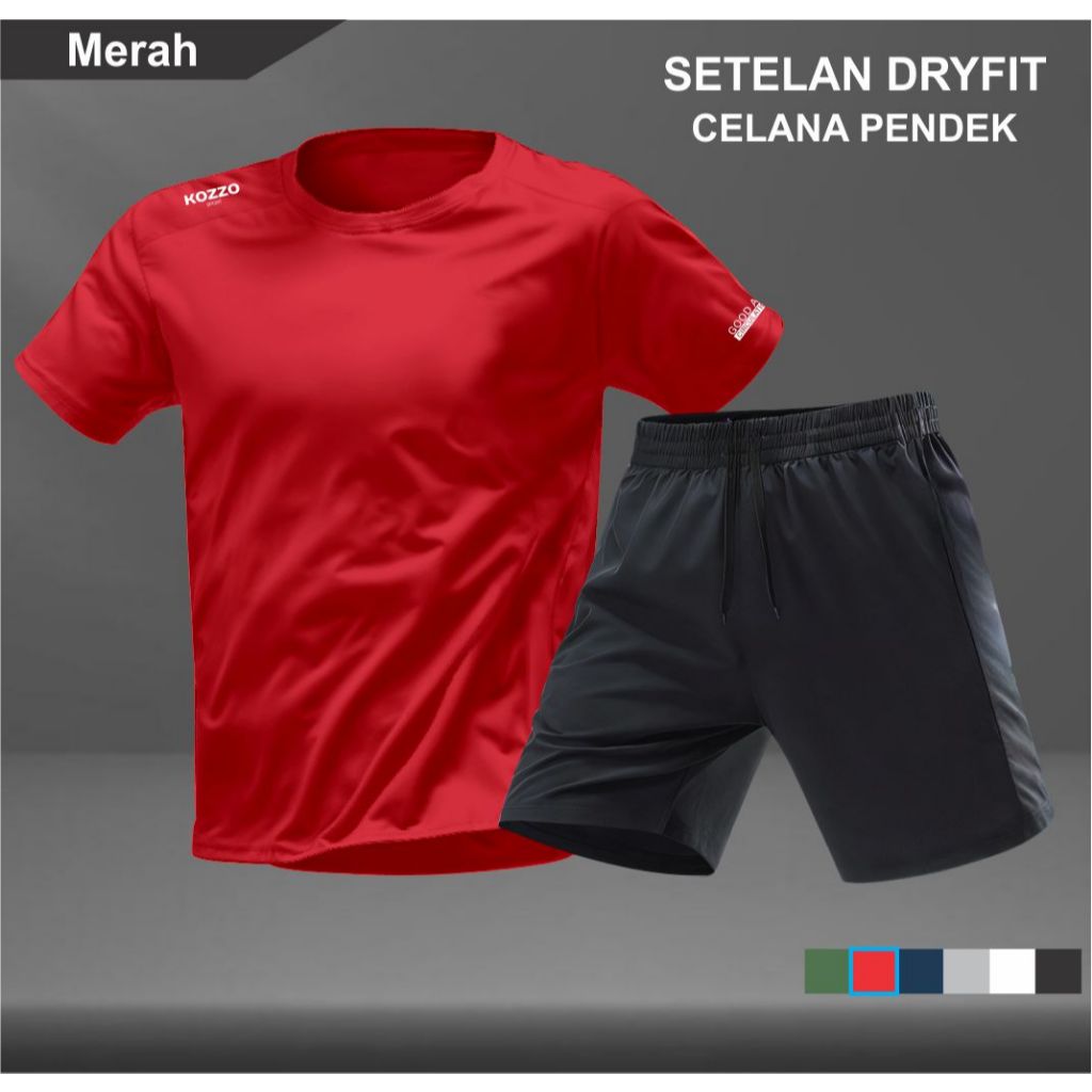 Setelan Kaos Running Dry Fit Kozzo Baju Olahraga dan Celana Pendek Lari Pria TANPA SAKU Gym Sport