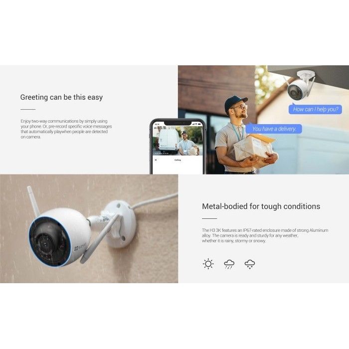 BEST Ezviz H3 3K Smart CCTV Outdoor Home Wifi IP Camera w/SD Card 32/64/128GB