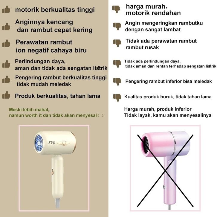 ( NEW 2025 ) KYB Hair Dryer Negative Ion Portable Low Watt 650W Pengering Rambut Hair Protection Quick Drying- FREE ONGK